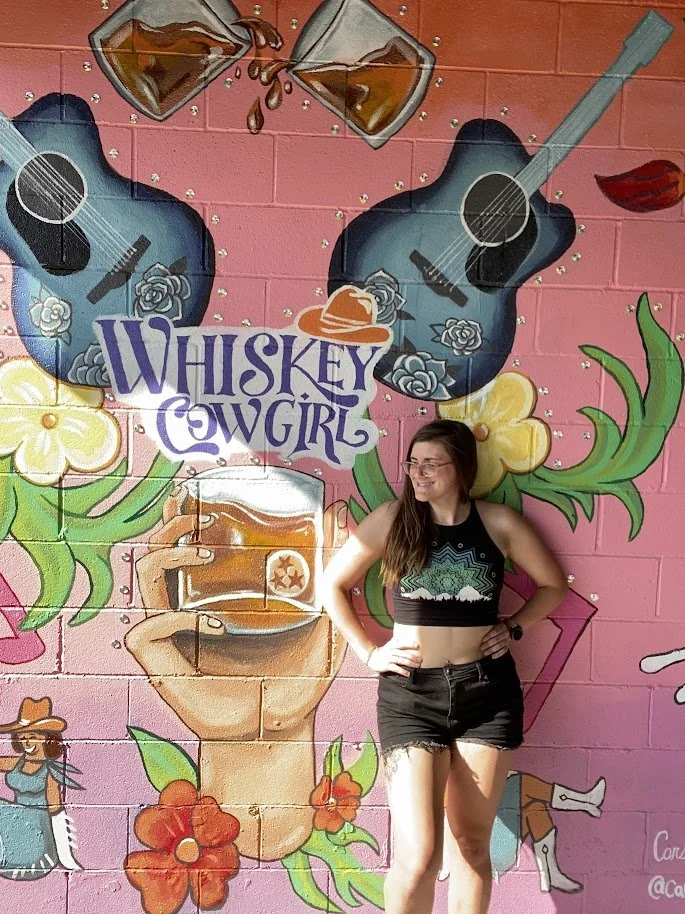 This is the 2nd mural that I painted for the bar Whiskey Cowgirl in Chattanooga, TN. The inspiration came from a famous western designer called Nudie Cohn.